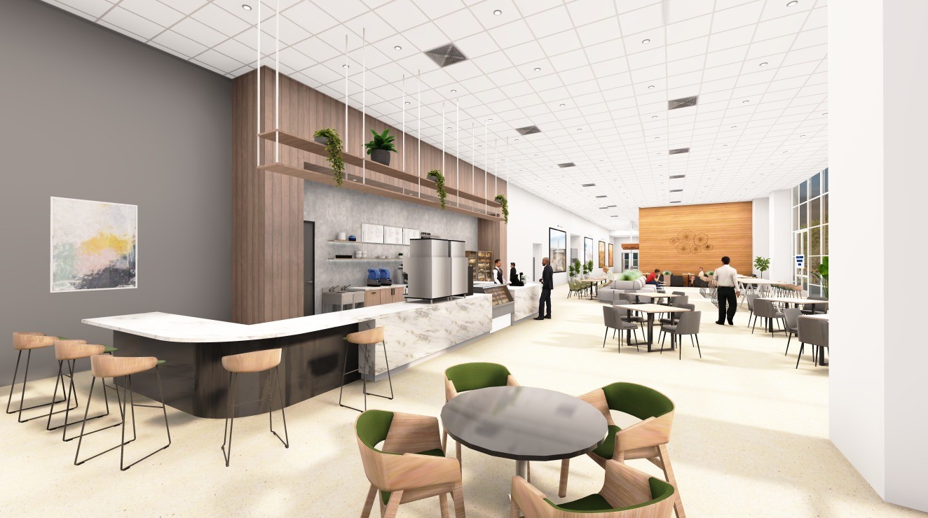 A centerpiece of the amenity program is a locally operated café/bakery/coffee shop offering artisan coffees and a locally sourced menu of breakfast, lunch, pastries, and desserts. This vibrant space creates a true community hub in the building, giving tenants a convenient and high-quality dining experience without leaving the office.